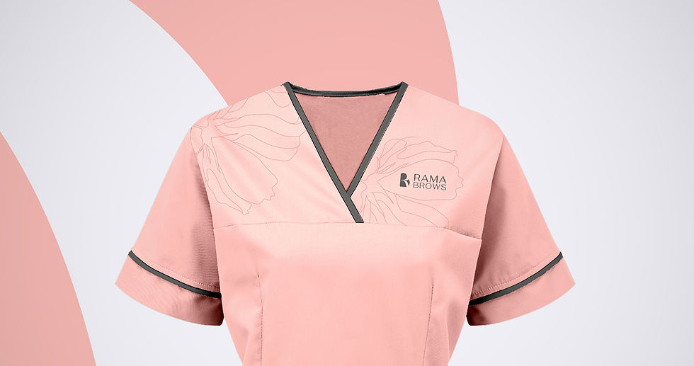 Na logo, buscou-se compilar as informações para o desenvolvimento de um símbolo que remetessem o equilíbrio e a harmonia através das iniciais “R” (Rama) e “B” (Brows), elementos que reforçam a união e a participação da marca durante os processos de revitalização da autoestima de cada cliente, e a sua preocupação em estar envolvida.